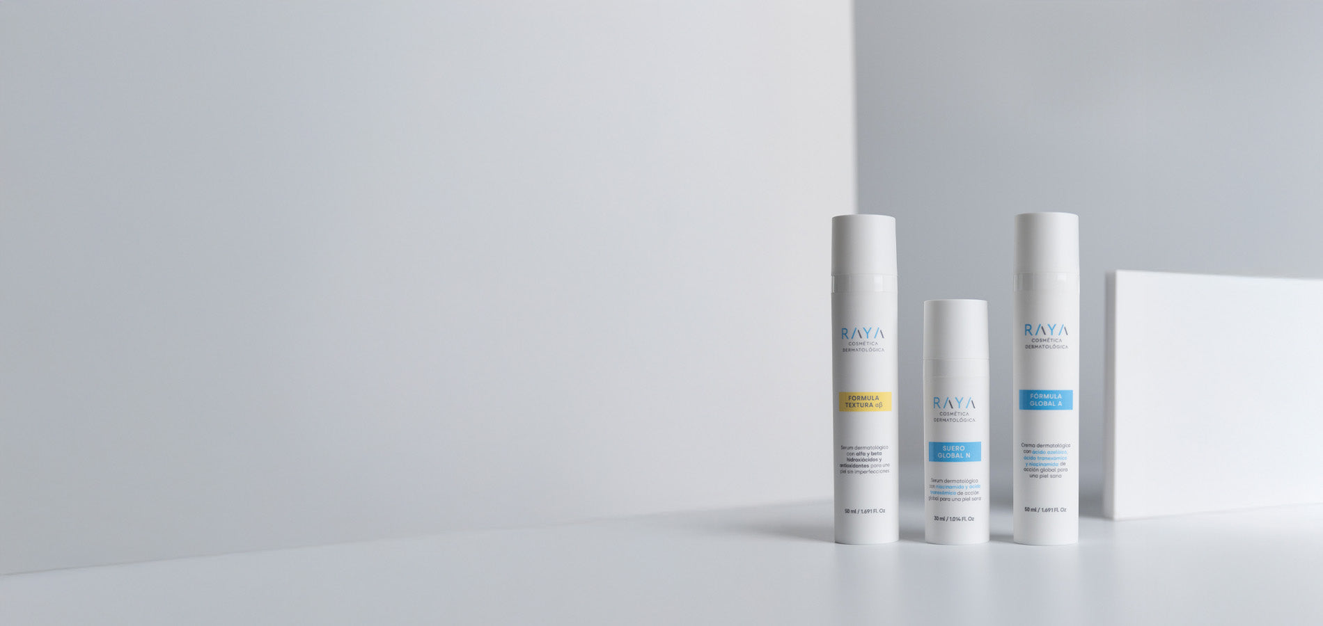 PACK RUTINA COMPLETA: FÓRMULA GLOBAL A. + FÓRMULA TEXTURA α β. + SUERO GLOBAL N. de RAYA Cosmética Dermatológica