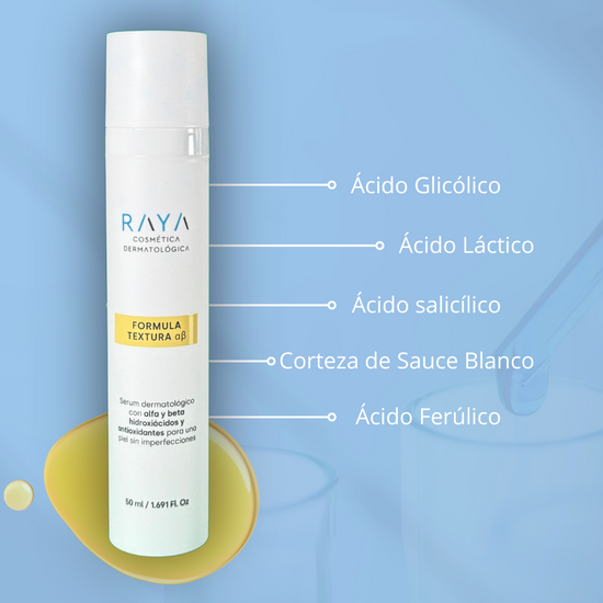 “Sérum dermatológico retexturizante con alfa y beta hidroxiácidos y antioxidantes para una piel libre de imperfecciones”.